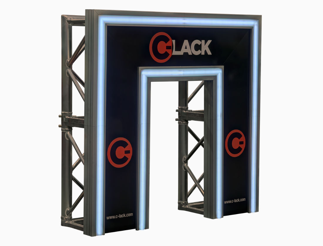 C-LACK (patent pending) è il profilo innovativo progettato per semplificare e migliorare tutte le operazioni di montaggio di schermi o teli su tralicci, con o senza grafiche.